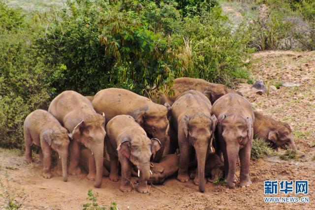 云南大象北上南归途中的温馨一幕(2021年6月21日摄)。新华网发(玉溪市委宣传部 供图)