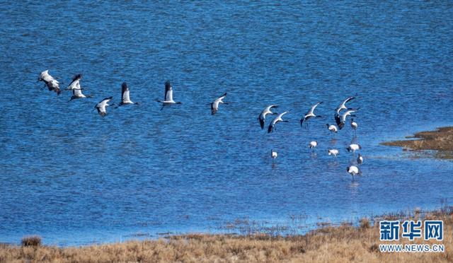 黑颈鹤如期抵达大山包越冬(11月7日摄)。新华网发(王远剑 摄)