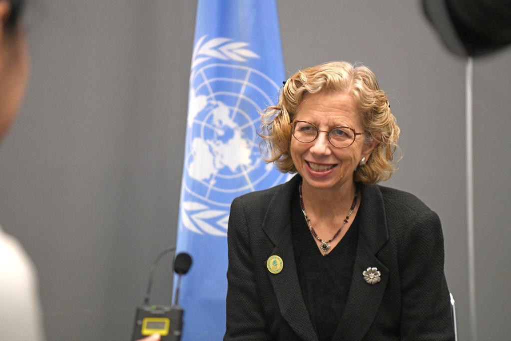 2022年12月16日,联合国环境规划署执行主任英厄·安诺生在加拿大蒙特利尔举行的《生物多样性公约》第十五次缔约方大会(COP15)第二阶段会议期间接受新华社记者专访。新华社记者 连漪 摄