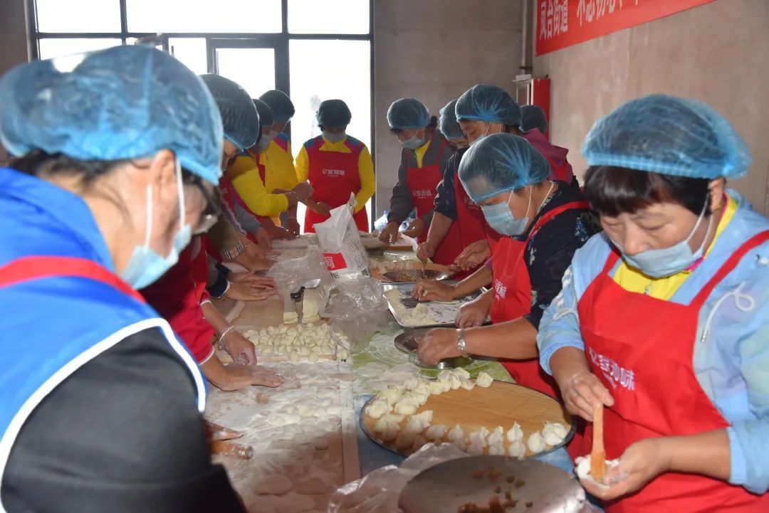 山东省平度市凤台街道依托辖区助老大食堂,组织开展“冬至大如年,饺子共团圆”活动,发动志愿者在冬至当天为老人们包饺子,送温暖。牟杰摄