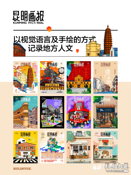 “关于一座城市的想象有许多种,而建筑与街景是其中最为具象的。昆明这方土地滋养着我们,但我们共同身处其中,却鲜有心思为某个建筑或街景驻足观赏,它们不仅有因为一方独特文化而造就的独有构筑形式,更在砖与石的外壳下承载着关于这个地方的文化与人们的故事。让更多本地人看看昆明,让更多外地人看见昆明。”是胡林悦开启《昆明画报》这个手绘计划的初衷。