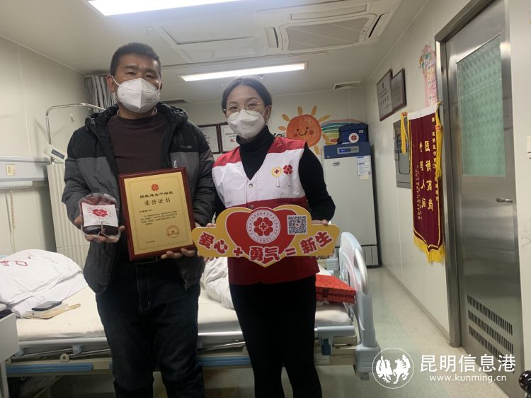 12月21日,刚新冠康复不久的王先生就急匆匆地从文山赶到昆明,12月22日,王先生在成功捐献淋巴细胞200多毫升,成为云南省第313例捐献者。