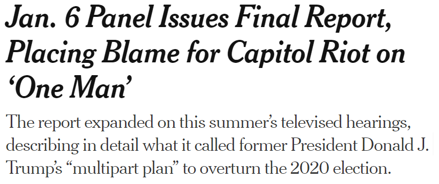 这份长达845页的报告详细记录了“前总统特朗普没有履行他的宪法义务”,“而是密谋推翻选举结果”。