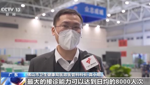 佛山市卫生健康局医政医管科科长 龚小明:最大的接诊能力可以达到日均8000人次,目前我们总体设计的是开放20个诊室,第一批是开放10个,包括有内科、儿科、急诊,还有护理、药学,总共150多名医护人员来进驻。