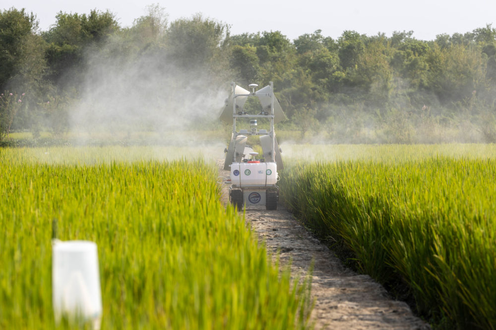 2022年9月22日,在上海土是宝数字农场,智能变量喷雾机器人利用中国移动5G+北斗高精度定位,实现精准规划的农机作业范围。新华社记者 王翔 摄