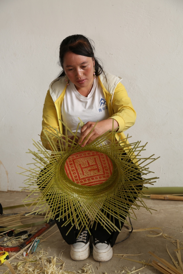 参加几次培训班以后,王玉荣学到了竹编新技巧,带着妻子编起了工艺品,他的手艺是当地残疾人中的佼佼者。2019年,王玉荣家享受了国家易地扶贫搬迁政策,全家搬进了会泽新城,住上了新房子。在会泽县城安置点,王玉荣被聘请为会泽新城致富车间的竹编技术指导师傅,带领妻子在扶贫车间以竹编为生,夫妻二人每月能挣到4000多元钱。
