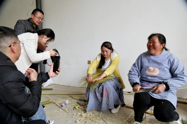△记者采访雨碌乡的竹编工艺 刘光信/摄