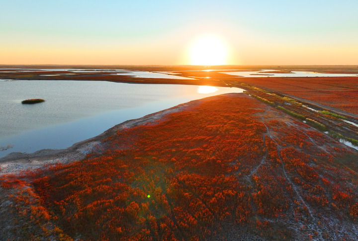 这是2022年9月21日拍摄的吉林省白城市镇赉县莫莫格湿地(无人机照片)。新华社发(潘晟昱 摄)