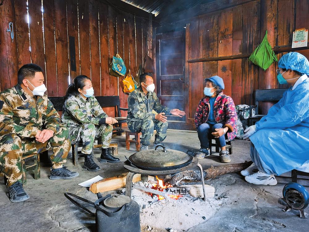 连日来,袁嘉和队员们每天奔波在泸水市各乡镇、村组,向群众宣传讲解防疫知识。疫情防控进入新阶段,特别是随着元旦、春节临近,疫情防控和健康服务工作压力增大。为此,怒江州选派1261名干部组成健康教育“背包队”,进村入户开展疫情防控政策、疫情科学防治措施、日常防护知识讲解,为群众答疑解惑,引导大家科学应对疫情。