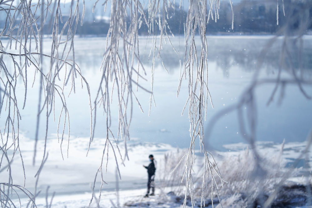 ↑ 这是2月22日在吉林市松花江边拍摄的雾凇美景。新华社记者 颜麟蕴 摄