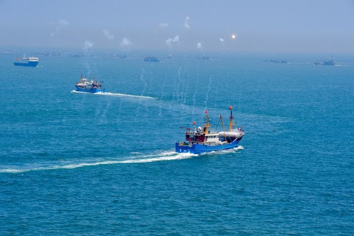 ↑ 8月16日,福建省福州市连江县苔菉中心渔港开渔出海的渔船在海面航行。新华社记者 姜克红 摄