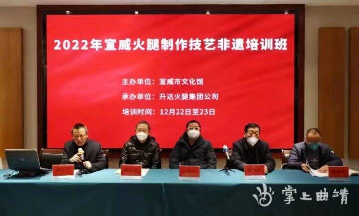 12月23日,为期2天的2022年度宣威火腿制作技艺非遗培训班在管升阔宣威火腿制作技艺传习馆圆满结束,来自全市的宣威火腿制作技艺传承人、宣威火腿月饼制作技艺、宣威菜烹饪技艺非遗传承人、宣威市餐饮与美食行业协会和全市火腿制作技艺非遗爱好者共50人参加了学习培训。