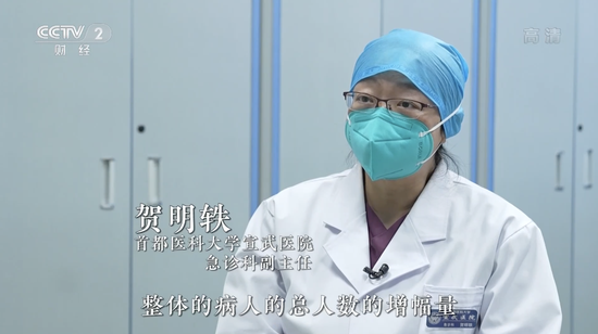首都医科大学宣武医院急诊科副主任 贺明轶:人流量肯定是较往年有一定增幅,但是实际上病人总人数没有翻倍增加。其实很多病人是基础病急性加重。每年到北方冬天,患者基础病恶化率比较高。即便没有每年流感或者是近三年的新冠,在这个高峰季节也是老龄的人或者是慢性病人的一个关卡。