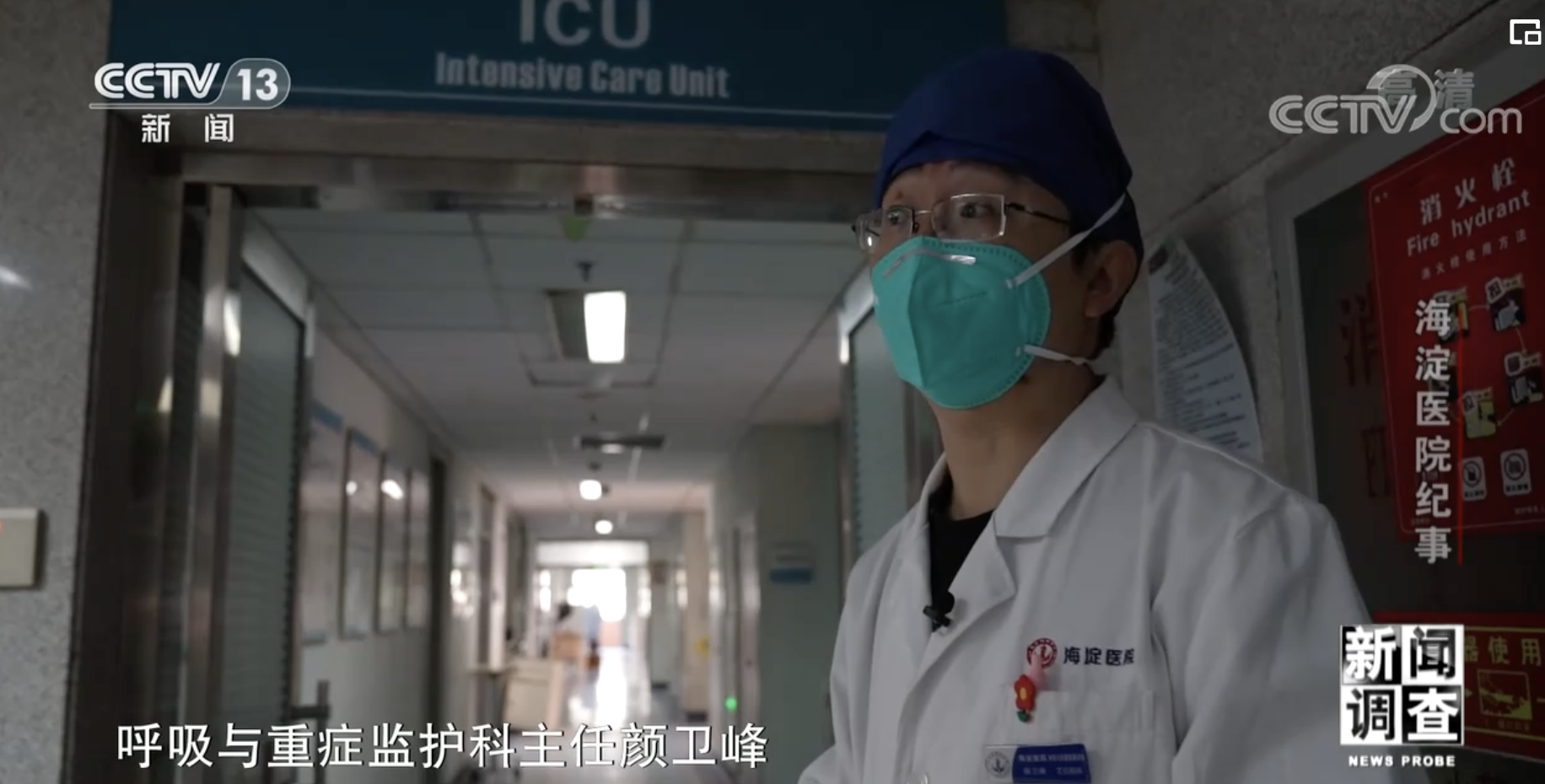 张院长:所以我们现在实际是在扩大医院的重症的监护的地方,一个是重症监护病房在扩容。原来我们12张床,我们现在打成这边(病区)12,这边(病区)再加一个18,后面还有一部分所以(变成)一个整个大病区,两个病区合并成一个变成一个重症监护病房。主要是人,要培训一个ICU大夫成长为一个大夫很慢,是很困难的,现在就以它(呼吸与重症监护科室)为班底把其它内科的大夫都加进去,我们麻醉师也加进去,其它的内科医生也要加进去,这样他们(呼吸与重症监护科室)带班,这个队伍要扩大才能应付这样的ICU扩容问题。我们那个小伙子你看见的(呼吸与重症监护科主任)颜卫峰,他多长时间都不回家了,我跟他说我说你是爷们不能躺下必须站着,他要倒了他们科室(就)没了没个主心骨,他怎么都得撑着。