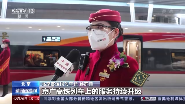 总台央视记者 陈晰:我现在在北京西站,我身后的是北京西开往石家庄的G891次列车,从今天(26日)零时开始,全国铁路开始实行2023年一季度列车运行图,充分运用京广高铁京武段时速350公里高标运营成果,北京西至石家庄,每天开行10对,运行时间1小时的直达高铁列车。