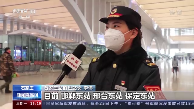 石家庄站值班站长 李伟:目前,邯郸东站、邢台东站、保定东站、涿州东站均有去往北京的始发高铁,正定机场站是全国最早实现“空铁联运”的车站之一,与石家庄国际机场相互连通,目前,石家庄机场近七成的旅客都是通过“空铁联运”出行,旅客出行效率更加高效。