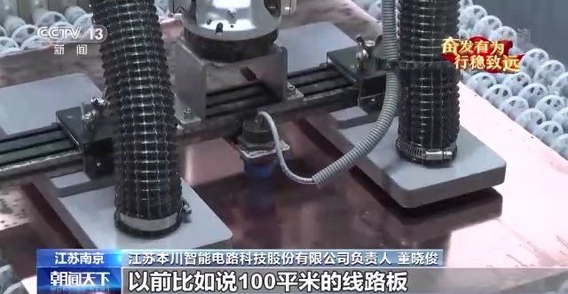 江苏本川智能电路科技股份有限公司负责人 董晓俊:传统工厂的设备,报废率估计要到0.6%,现在是低于0.1%。以前比如说100平方米的线路板,我们交期可能要到两周的时间,现在8天就可以搞定了。
