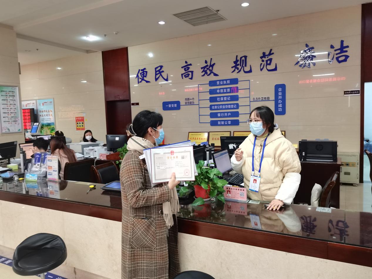 一网通办、一窗办结、一次采集、一套材料、一档管理,营业执照申领、印章刻制、社保登记、银行开户等全流程一次办齐,在鹰潭市政务服务大厅一楼的企业开办专窗,不仅办事十分清晰、便捷,还有零成本开办“大礼包”,营业执照正副本、首套4枚印章、税务Ukey、惠企政策一并免费奉上。