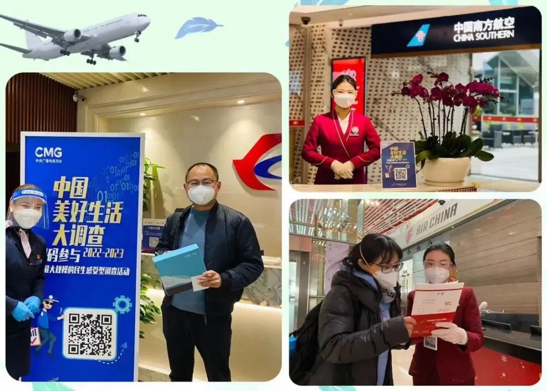 空中调查:除了遍布全国的邮政网络系统,我们的大调查明信片问卷也上天啦!中国国际航空公司、中国东方航空公司、中国南方航空公司的航班上,也能填写大调查的问卷了!这些从“空中传回的声音”,将丰富调查渠道和信息回收,加厚调查数据积淀。