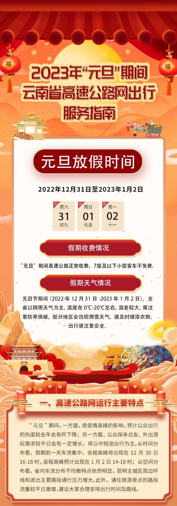 2023年元旦即将到来,为大家准备了元旦期间高速公路出行服务指南,一起来看!(云南省交通运输厅 云南发布)