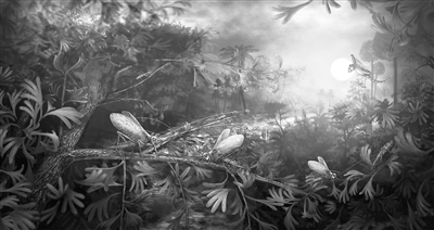 “在现代陆地生态系统的声学景观中,热带地区由昆虫和青蛙的叫声占据主导。而在温带地区,鸟类的叫声则显得更为丰富。”许春鹏说,“我们的研究发现,中生代时期的声学景观与现代完全不同。”