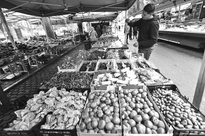 11月4日,在比利时布鲁塞尔一市场,商贩准备商品。新华社发