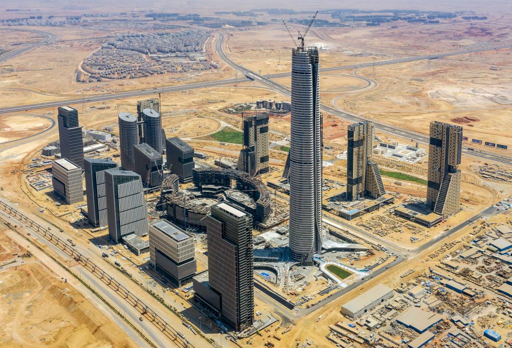 这是2022年7月19日拍摄的由中国建筑股份有限公司埃及分公司承建的埃及新行政首都中央商务区项目(无人机照片)。新华社发(中建埃及供图)