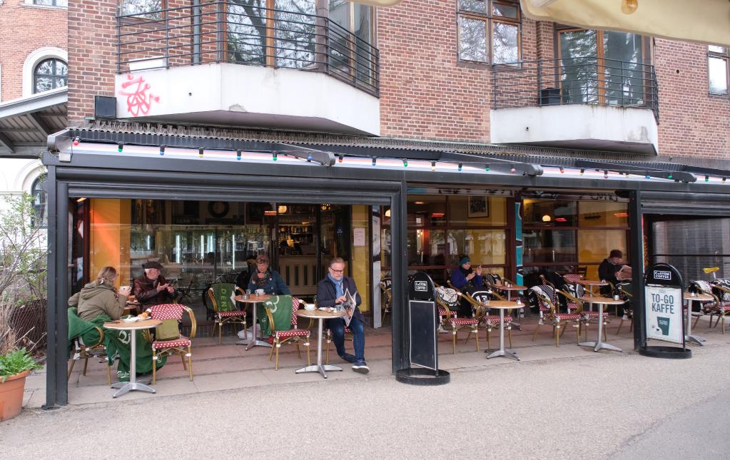 这是2021年4月21日拍摄的丹麦哥本哈根一家咖啡馆的户外餐区。新华社发(安德斯·孔斯豪摄)