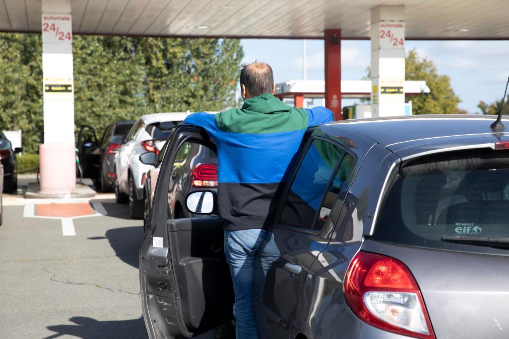2022年10月6日,在法国北部城市里尔,加油站前的车辆排起长队。新华社发(塞巴斯蒂安·库尔吉摄)