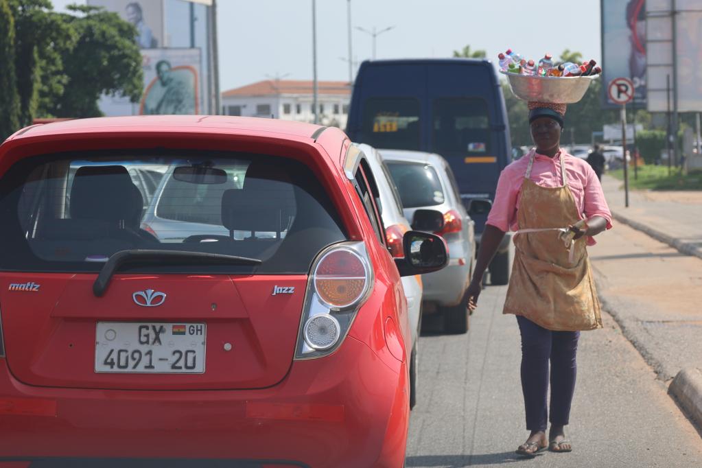 2022年7月14日,在加纳首都阿克拉,商贩沿街兜售饮料。新华社发(赛特摄)