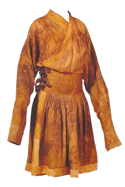 史料中几乎都是对质孙服颜色、面料的描述,没有对形制做具体的描述。有种说法是说它类似于辫线袍。辫线袍“制如窄袖衫,腰作辫线细褶”,是蒙古族特有的一种袍服。不同于其他袍服,它的主要特征是腰间不计其数的细褶,窄袖束腰,上紧下宽,紧身轻便,便于骑射,又利于保暖,非常符合游牧民族的服饰特征。