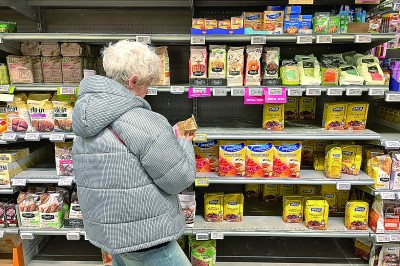 4月1日,顾客在比利时布鲁塞尔的一家超市选购面粉。欧盟统计局当日公布的初步统计数据显示,今年3月欧元区通胀率创历史新高。图片为新华社发