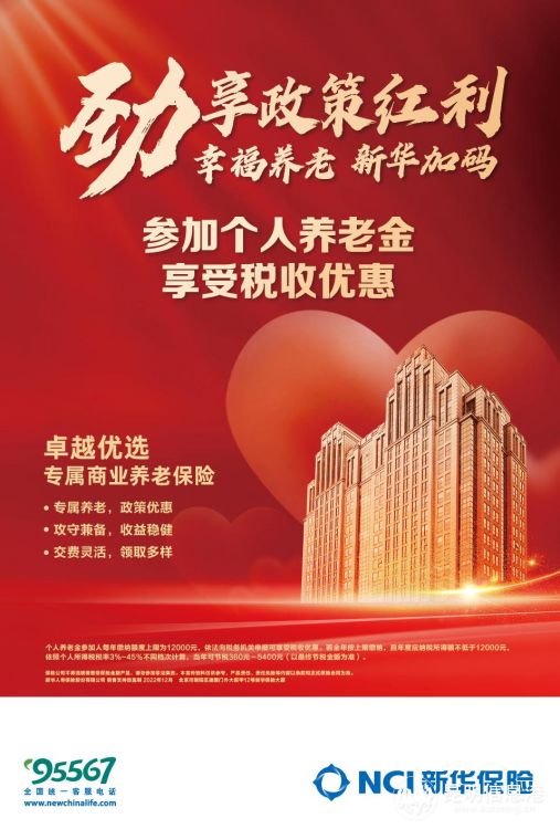 新华保险作为银保监会第一批专属商业养老保险试点公司之一,积极践行国有控股保险企业应有的使命担当,始终坚守“情为民所系,利为民所谋”的思想理念,将“卓越优选专属商业养老保险”纳入个人养老金产品范畴,以定制化的养老方案满足民众养老金储备需求。
