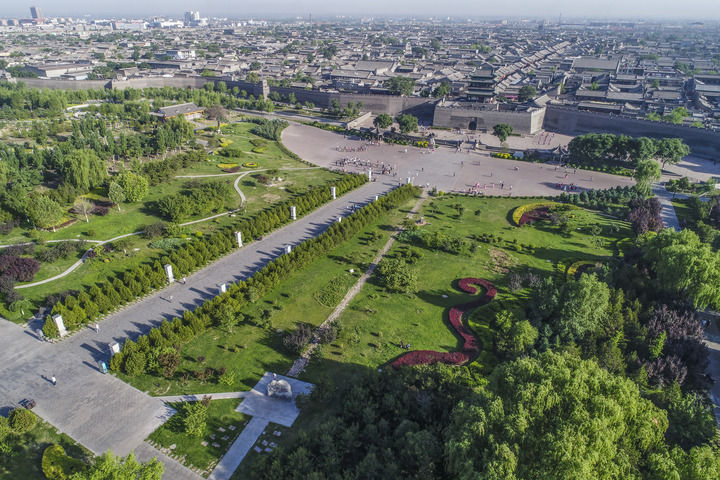 这是平遥古城南门外的迎薰公园(2018年6月5日摄)。新华社发(梁生仁摄)