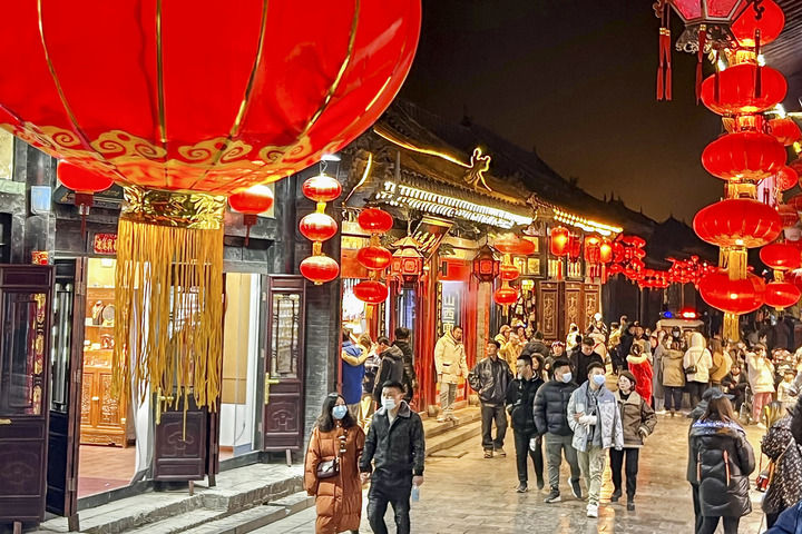 这是平遥古城内明清街夜景(2022年2月7日摄)。新华社发(梁生仁摄)