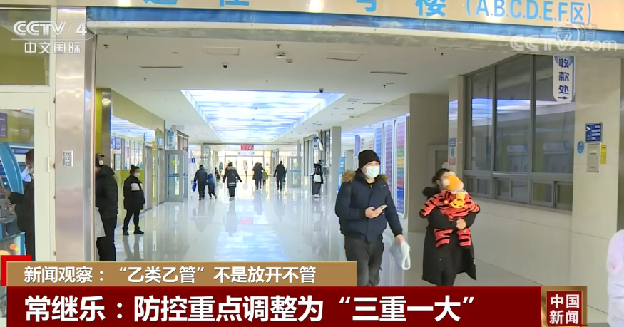 国家疾控局副局长常继乐介绍,新冠病毒感染从“乙类甲管”调整为“乙类乙管”,调整后防控措施重点可以简要概括为“三重一大”。