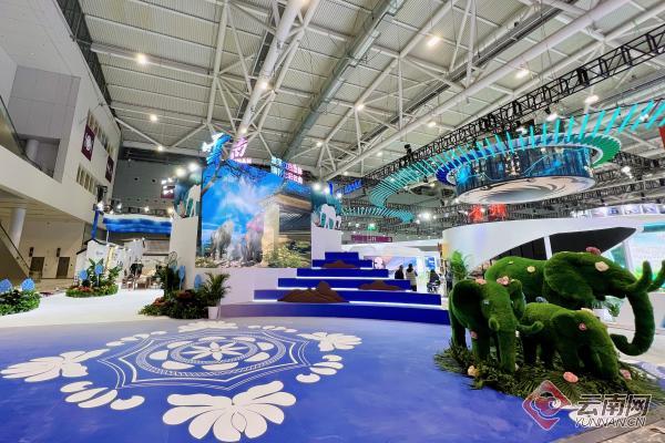 大象迎宾,鲜花盛开。走进云南展区,“激荡红色血脉,徜徉七彩云南”的门头醒目亮眼。“舞台+裸眼3D大屏+聂耳复原影像透明屏+亚洲象迎宾装置”组成的迎宾主舞台引来不少观众驻足围观。