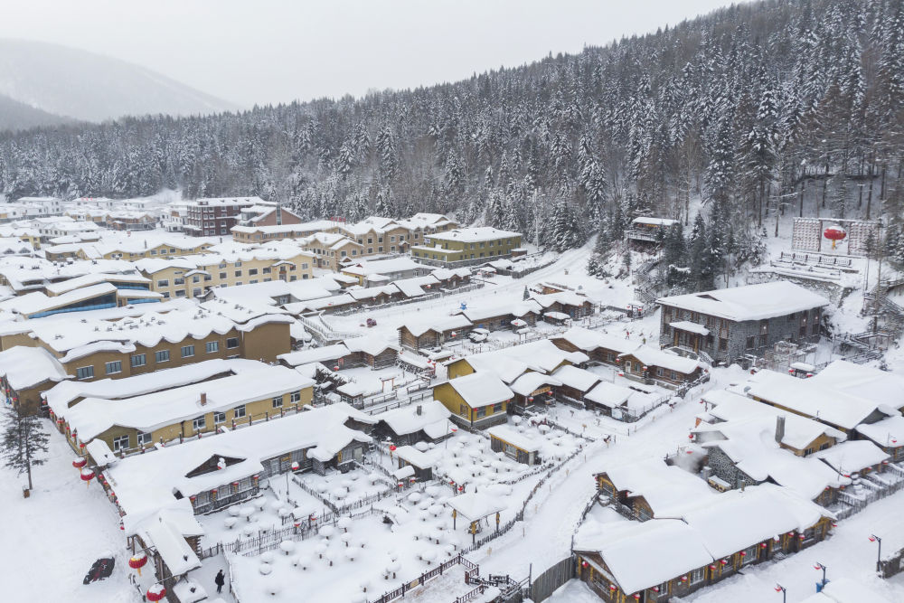 12月14日拍摄的雪乡景区一角(无人机照片)。新华社记者 谢剑飞 摄