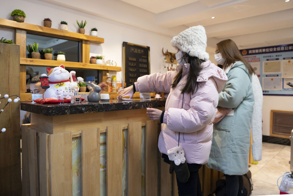 12月14日,游客在雪乡景区的一家民宿办理入住手续。新华社记者 谢剑飞 摄