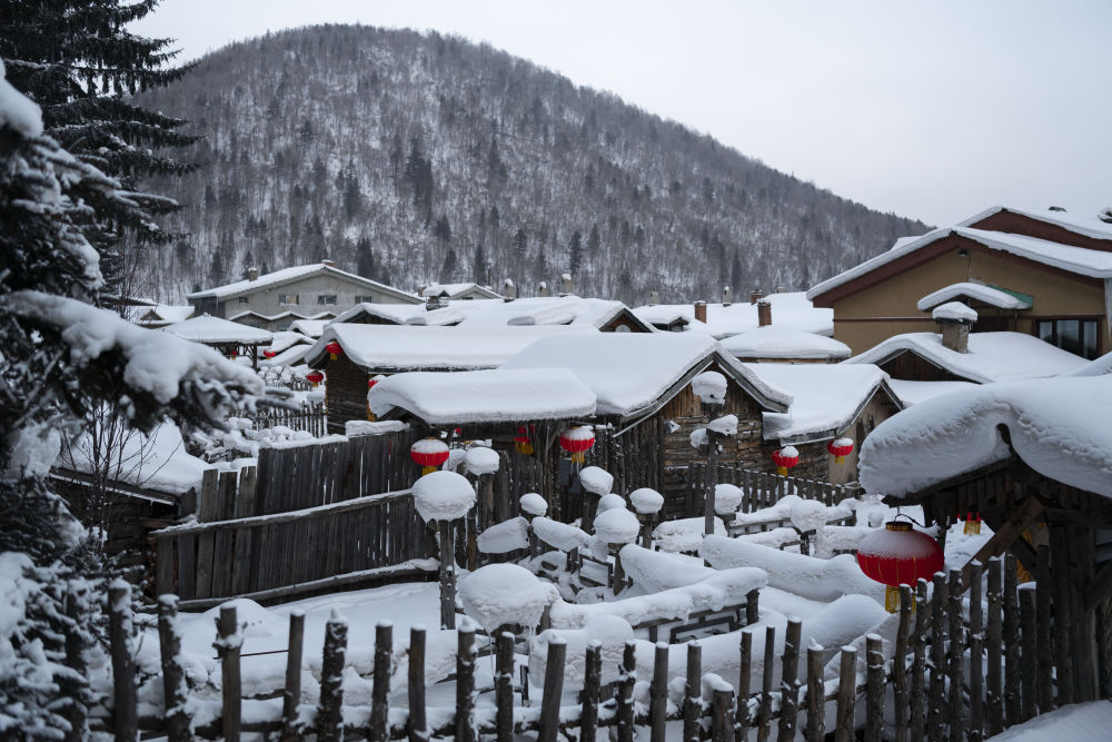 皑皑白雪配上红灯笼,仿佛置身于童话世界,这就是中国雪乡——黑龙江省牡丹江市大海林林业局有限公司双峰林场。
