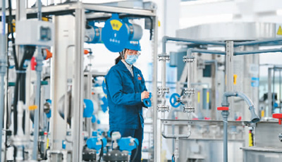 12月24日,江西省赣州市龙南市某个国家专精特新“小巨人”企业,工人在绿色智造项目车间生产锂电池材料。 朱海鹏摄(人民视觉)