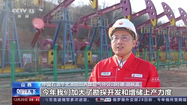 中国石油华北油田山西煤层气分公司经理 胡秋嘉:今年我们加大了勘探开发和增储上产力度,全年投产350余口煤层气井、新建产能8亿立方米,单井最高日产气量突破2.5万立方米,气田年生产能力跃上21亿立方米台阶。