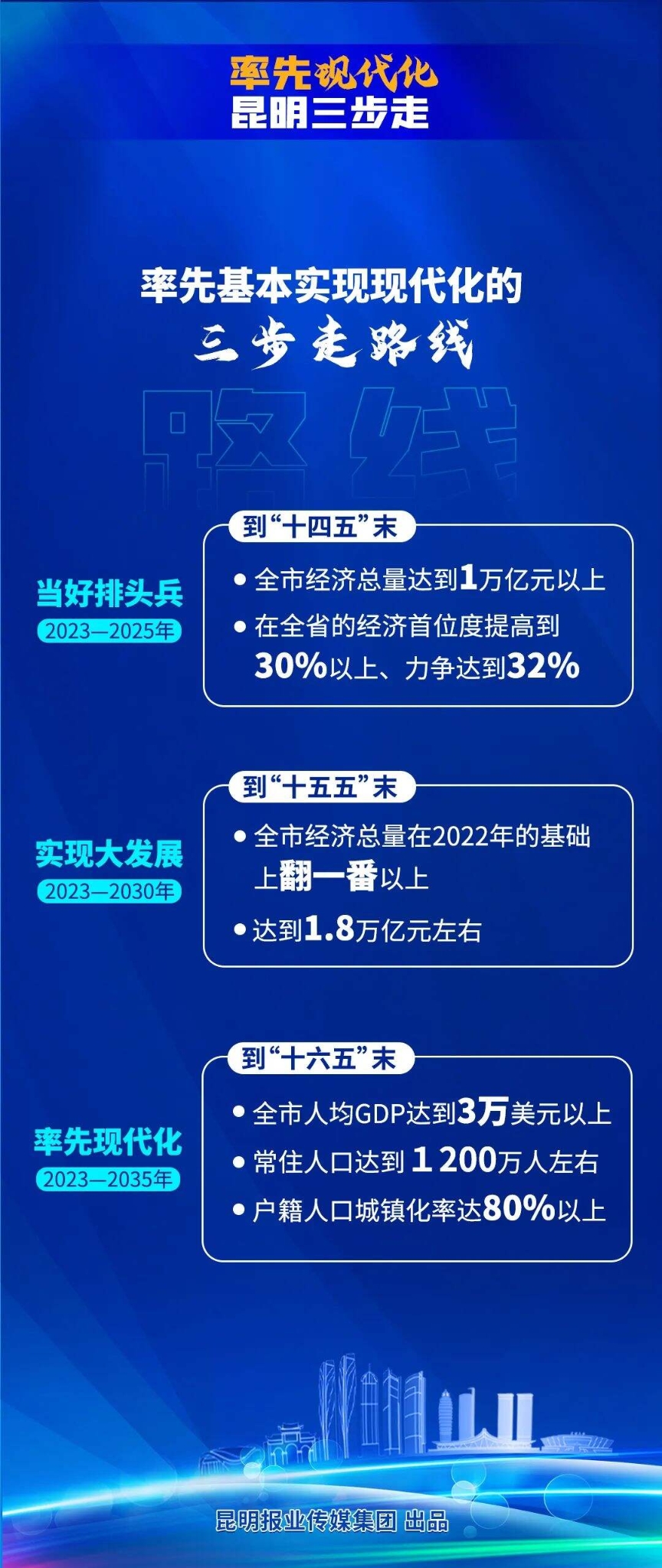 结合昆明实际,立足昆明特点,市委提出到2035年在全省率先基本实现社会主义现代化的奋斗目标。