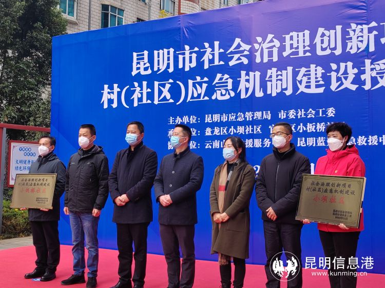 昆明信息港讯 记者李红鸾 12月29日,昆明市“社会治理创新项目村(社区)应急机制建设”授牌仪式在盘龙区小坝社区举行。昆明市应急管理局、昆明市红十字会、盘龙区、官渡区人民政府、盘龙区、官渡区应急管理局等相关领导出席了本次授牌仪式,并为盘龙区小坝社区、官渡区小板桥社区社会治理创新项目社区应急机制建设点进行了授牌。