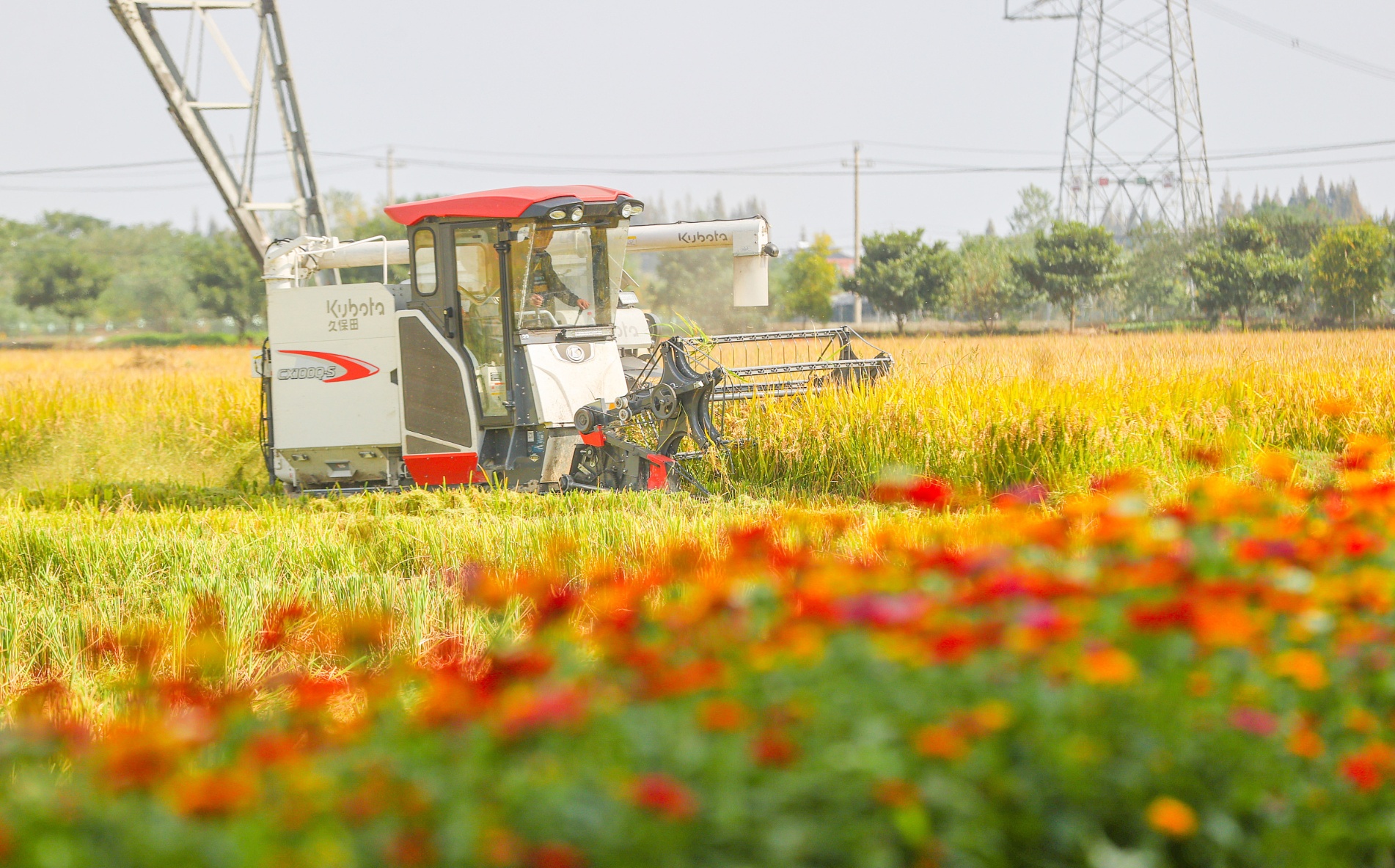 资料图:2022年11月,浙江湖州,农民收割秋粮(图源:CFP)