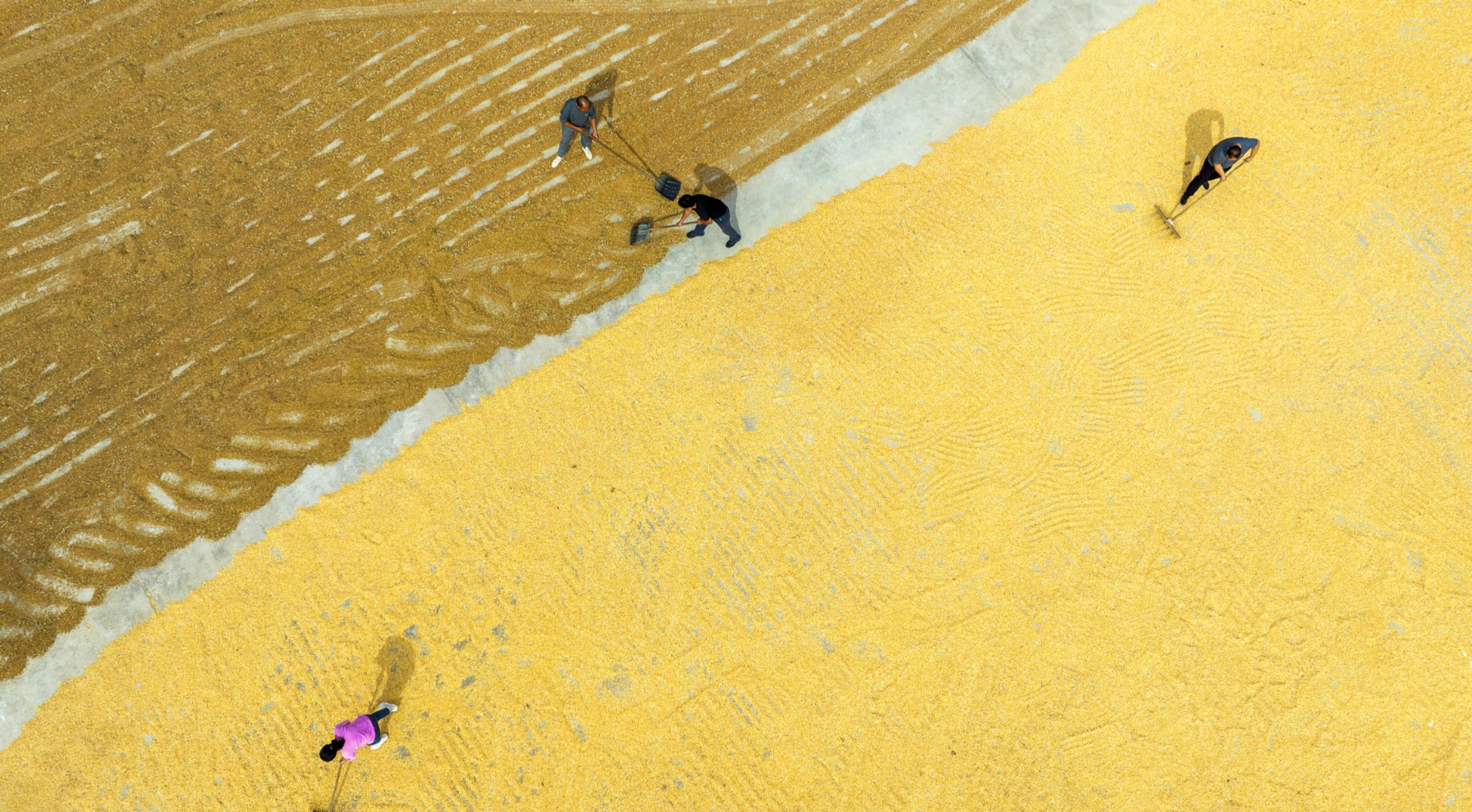 资料图:2022年9月,河南驻马店,农民晒秋粮(图源:CFP)