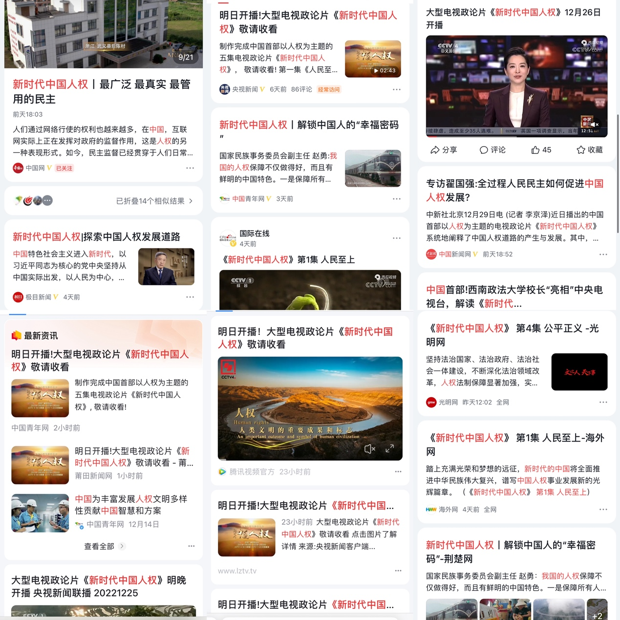 由中国人权研究会指导,中央广播电视总台华语环球节目中心摄制的五集大型电视政论片《新时代中国人权》,2022年12月26日至30日,在总台央视综合频道、中文国际频道播出,引发社会热烈反响,得到学界与舆论界广泛关注,成为讲好中国人权故事的一次成功尝试。中国人权发展理念、道路与成就成为近期网络“霸屏”“刷圈”的热议话题。