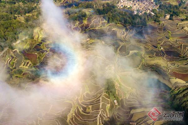入冬,元阳哈尼梯田进入最佳观赏期。苍穹之下,万亩梯田之上,云海似瀑布流云,与静谧的梯田、哈尼村庄若即若离,风吹云动、若隐若现,宛如流动的山水画卷,云锦天章,异水流芳。云散开时,层层“天梯”一望无际,更是令人赞叹不已。
