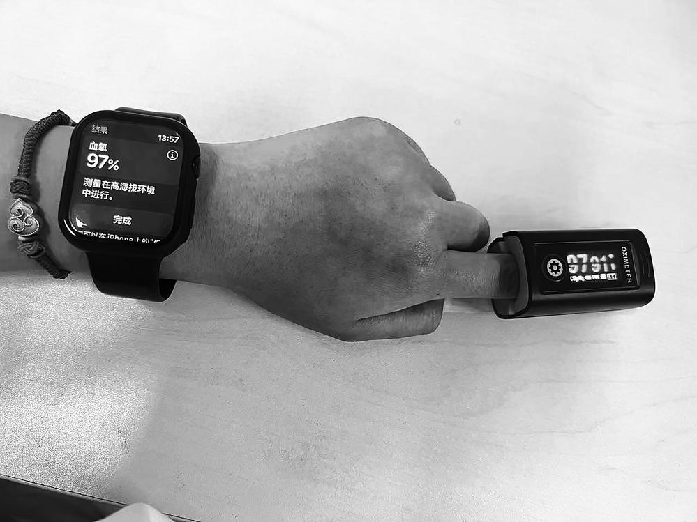智能手表和指夹式血氧仪测出的血氧饱和度值相差不大