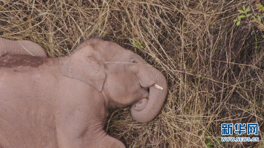 随着年龄增长,小公象逐渐长出漂亮的象牙(2021年6月7日摄)。新华网发(云南省森林消防总队 供图)